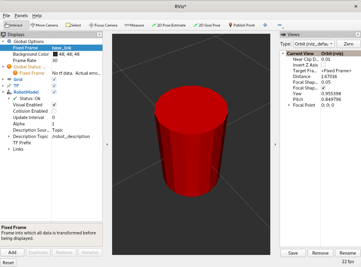 Panels: - Class: rviz_common/Displays Help Height: 78 Name: Displays Property Tree Widget: Expanded: - /Global Options1 - /Status1 - /RobotModel1 Splitter Ratio: 0.5 Tree Height: 610 - Class: rviz_common/Selection Name: Selection - Class: rviz_common/Tool Properties Expanded: - /2D Goal Pose1 - /Publish Point1 Name: Tool Properties Splitter Ratio: 0.5886790156364441 - Class: rviz_common/Views Expanded: - /Current View1 Name: Views Splitter Ratio: 0.5 Visualization Manager: Class: "" Displays: - Alpha: 0.5 Cell Size: 1 Class: rviz_default_plugins/Grid Color: 160; 160; 164 Enabled: true Line Style: Line Width: 0.029999999329447746 Value: Lines Name: Grid Normal Cell Count: 0 Offset: X: 0 Y: 0 Z: 0 Plane: XY Plane Cell Count: 10 Reference Frame: <Fixed Frame> Value: true - Class: rviz_default_plugins/TF Enabled: true Frame Timeout: 15 Frames: All Enabled: true Marker Scale: 1 Name: TF Show Arrows: true Show Axes: true Show Names: false Tree: {} Update Interval: 0 Value: true - Alpha: 1 Class: rviz_default_plugins/RobotModel Collision Enabled: false Description File: "" Description Source: Topic Description Topic: Depth: 5 Durability Policy: Volatile History Policy: Keep Last Reliability Policy: Reliable Value: /robot_description Enabled: true Links: All Links Enabled: true Expand Joint Details: false Expand Link Details: false Expand Tree: false Link Tree Style: Links in Alphabetic Order base_link: Alpha: 1 Show Axes: false Show Trail: false Value: true Name: RobotModel TF Prefix: "" Update Interval: 0 Value: true Visual Enabled: true Enabled: true Global Options: Background Color: 48; 48; 48 Fixed Frame: base_link Frame Rate: 30 Name: root Tools: - Class: rviz_default_plugins/Interact Hide Inactive Objects: true - Class: rviz_default_plugins/MoveCamera - Class: rviz_default_plugins/Select - Class: rviz_default_plugins/FocusCamera - Class: rviz_default_plugins/Measure Line color: 128; 128; 0 - Class: rviz_default_plugins/SetInitialPose Topic: Depth: 5 Durability Policy: Volatile History Policy: Keep Last Reliability Policy: Reliable Value: /initialpose - Class: rviz_default_plugins/SetGoal Topic: Depth: 5 Durability Policy: Volatile History Policy: Keep Last Reliability Policy: Reliable Value: /goal_pose - Class: rviz_default_plugins/PublishPoint Single click: true Topic: Depth: 5 Durability Policy: Volatile History Policy: Keep Last Reliability Policy: Reliable Value: /clicked_point Transformation: Current: Class: rviz_default_plugins/TF Value: true Views: Current: Class: rviz_default_plugins/Orbit Distance: 1.6701574325561523 Enable Stereo Rendering: Stereo Eye Separation: 0.05999999865889549 Stereo Focal Distance: 1 Swap Stereo Eyes: false Value: false Focal Point: X: 0 Y: 0 Z: 0 Focal Shape Fixed Size: true Focal Shape Size: 0.05000000074505806 Invert Z Axis: false Name: Current View Near Clip Distance: 0.009999999776482582 Pitch: 0.8497963547706604 Target Frame: <Fixed Frame> Value: Orbit (rviz) Yaw: 0.9553980827331543 Saved: ~ Window Geometry: Displays: collapsed: false Height: 846 Hide Left Dock: false Hide Right Dock: false QMainWindow State: 000000ff00000000fd000000040000000000000156000002f0fc0200000008fb0000001200530065006c0065006300740069006f006e00000001e10000009b0000005d00fffffffb0000001e0054006f006f006c002000500072006f007000650072007400690065007302000001ed000001df00000185000000a3fb000000120056006900650077007300200054006f006f02000001df000002110000018500000122fb000000200054006f006f006c002000500072006f0070006500720074006900650073003203000002880000011d000002210000017afb000000100044006900730070006c006100790073010000003f000002f0000000cc00fffffffb0000002000730065006c0065006300740069006f006e00200062007500660066006500720200000138000000aa0000023a00000294fb00000014005700690064006500530074006500720065006f02000000e6000000d2000003ee0000030bfb0000000c004b0069006e0065006300740200000186000001060000030c00000261000000010000010f000002f0fc0200000003fb0000001e0054006f006f006c002000500072006f00700065007200740069006500730100000041000000780000000000000000fb0000000a00560069006500770073010000003f000002f0000000a900fffffffb0000001200530065006c0065006300740069006f006e010000025a000000b200000000000000000000000200000490000000a9fc0100000001fb0000000a00560069006500770073030000004e00000080000002e10000019700000003000004420000003efc0100000002fb0000000800540069006d00650100000000000004420000000000000000fb0000000800540069006d006501000000000000045000000000000000000000023f000002f000000004000000040000000800000008fc0000000100000002000000010000000a0054006f006f006c00730100000000ffffffff0000000000000000 Selection: collapsed: false Tool Properties: collapsed: false Views: collapsed: false Width: 1200 X: 60 Y: 60 |